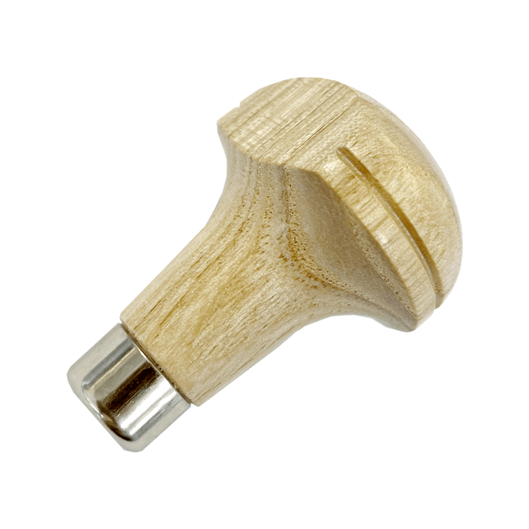 这款木制珠子工具手柄适合直径为 3/32 英寸的珠子工具或任何 3/32 英寸尺寸的工具。此手柄采用圆形半头顶部。扁平侧面确保安全且易于抓握。内置黄铜套管,带黄铜钳口。