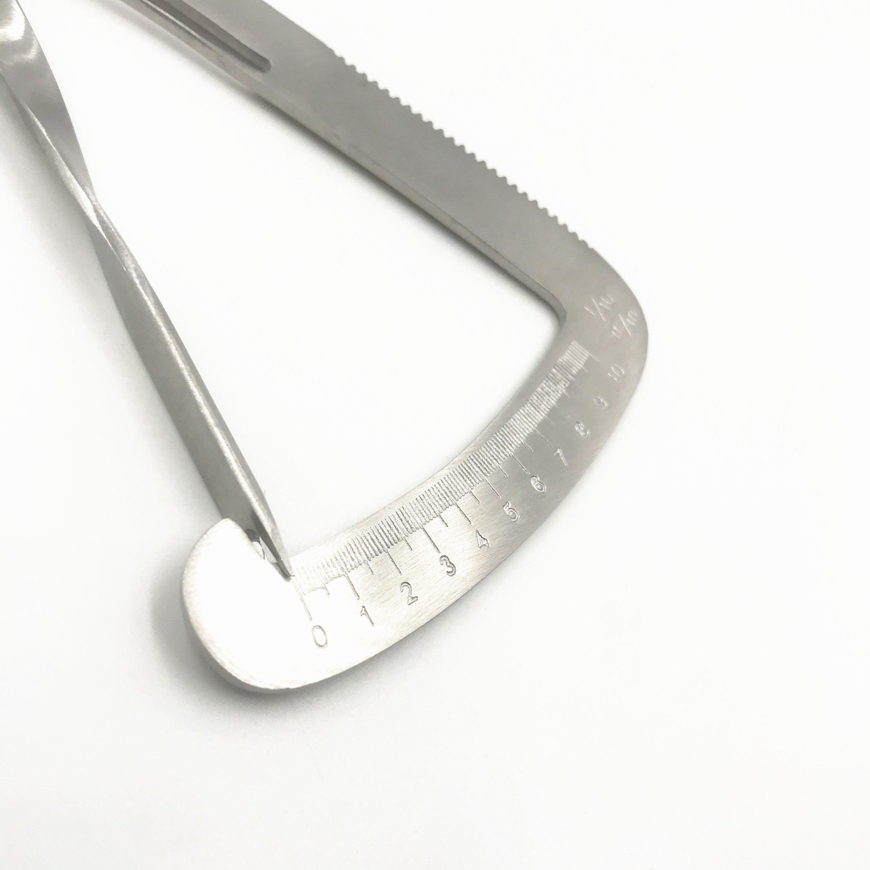 清晰蚀刻的刻度板以英寸和毫米为单位进行测量。