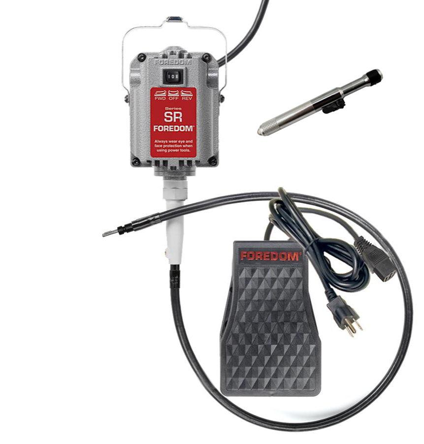 1. SR-2 系列电机:Foredom 最受欢迎且最适合一般用途的电机。1/6 HP、滚珠轴承、悬挂式;M.SR 正向和反向运行速度高达 18,000 RPM。它配备了用于悬挂的电机包,以及我们标准的 39 英寸长键尖内轴,用于连接到 Foredom 的标准键尖手柄。